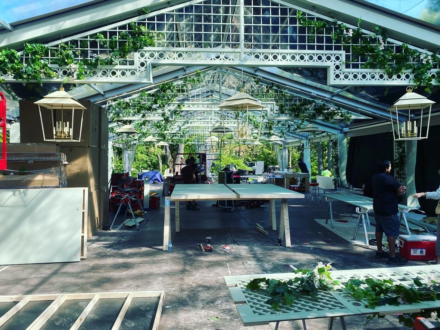 CXC designed and fabricated a custom cladding system to fully enclose the tent and give it the appearance of a permanent glasshouse. To elevate the aesthetic, we incorporated precision CNC-milled latticework throughout, combining craftsmanship with digital fabrication for a clean, consistent finish.