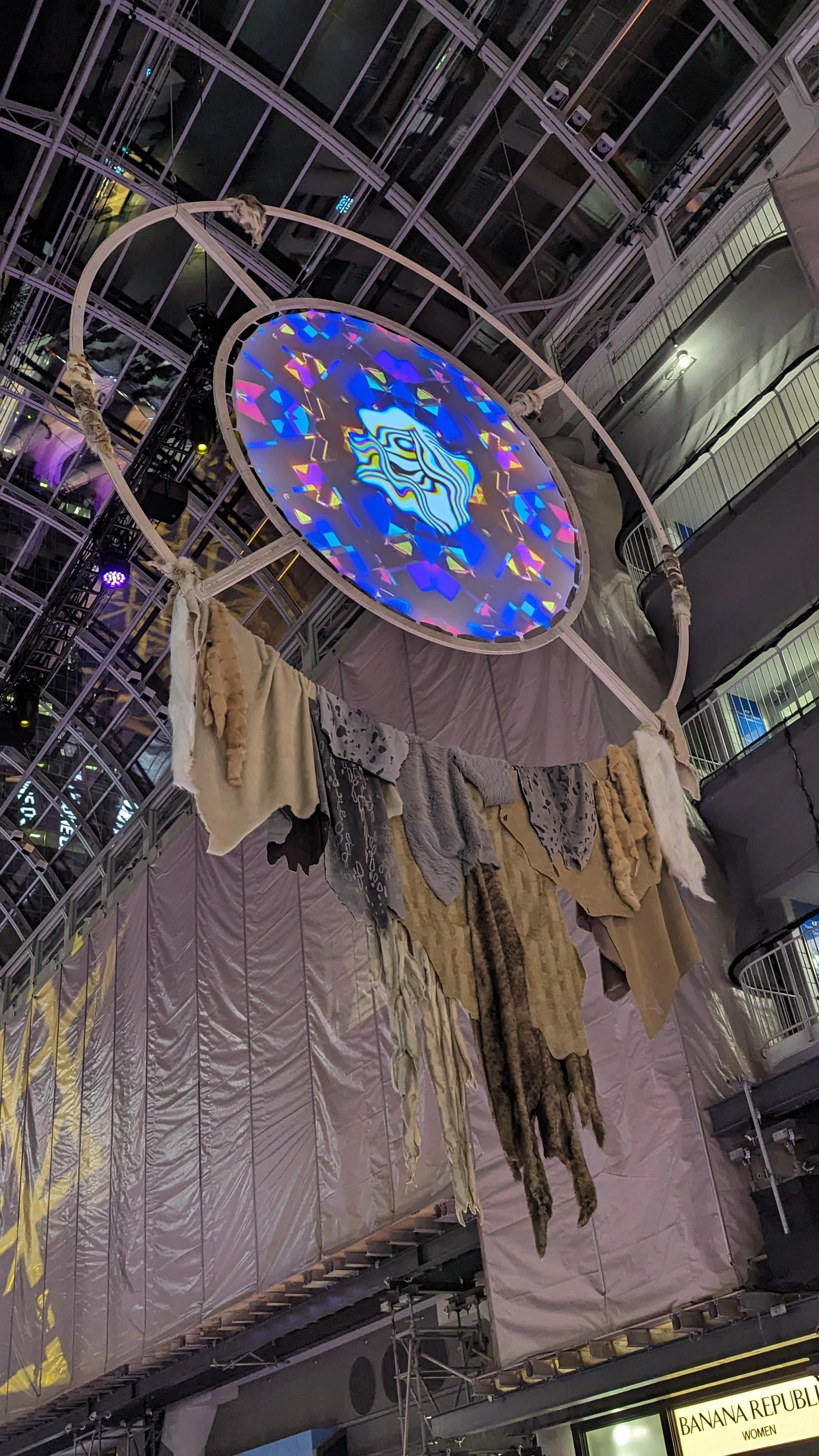 For Indigenous Fashion Arts (IFA), the vision was to create a striking installation in one of Toronto’s busiest public spaces — the CF Eaton Centre. The project required the design and fabrication of four large-scale custom circular projection units, each measuring 22 feet in diameter, to serve as immersive visual platforms for IFA’s showcase.